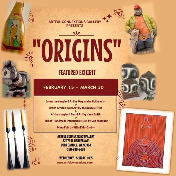 The "Origins" Exhibit Show has ended, however, many of these artist's work can still be viewed throughout the gallery showroom.